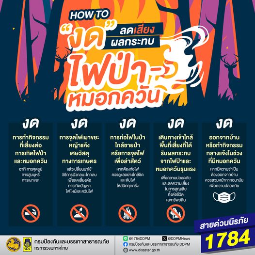 ✅ งดเดินทางเข้าใกล้พื้นที่เสี่ยงที่ได้รับผลกระทบจากไฟป่าและหมอกควันรุนแรง