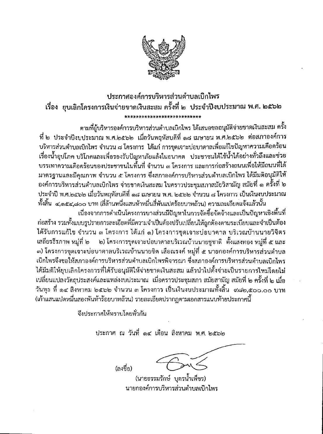 ประกาศองค์การบริหารส่วนตำเบิกไพร
