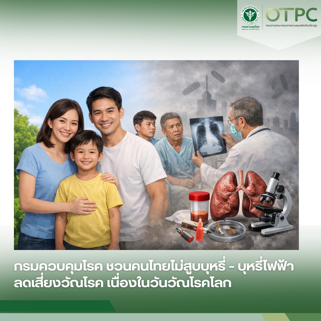 เรื่อง กรมควบคุมโรค ชวนคนไทยไม่สูบบุหรี่–บุหรี่ไฟฟ้า ลดเสี่ยงวัณโรค เนื่องในวันวัณโรคโลก