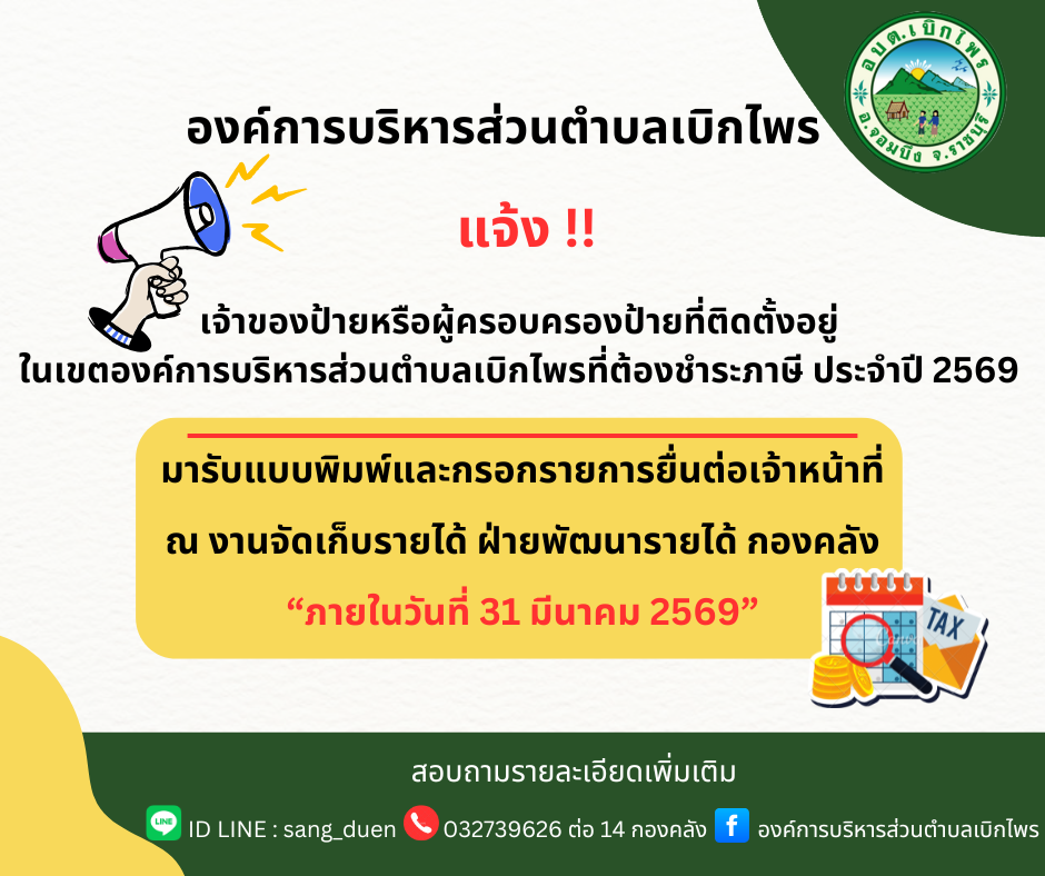องค์การบริหารส่วนตำบลเบิกไพร ขอประชาสัมพันธ์