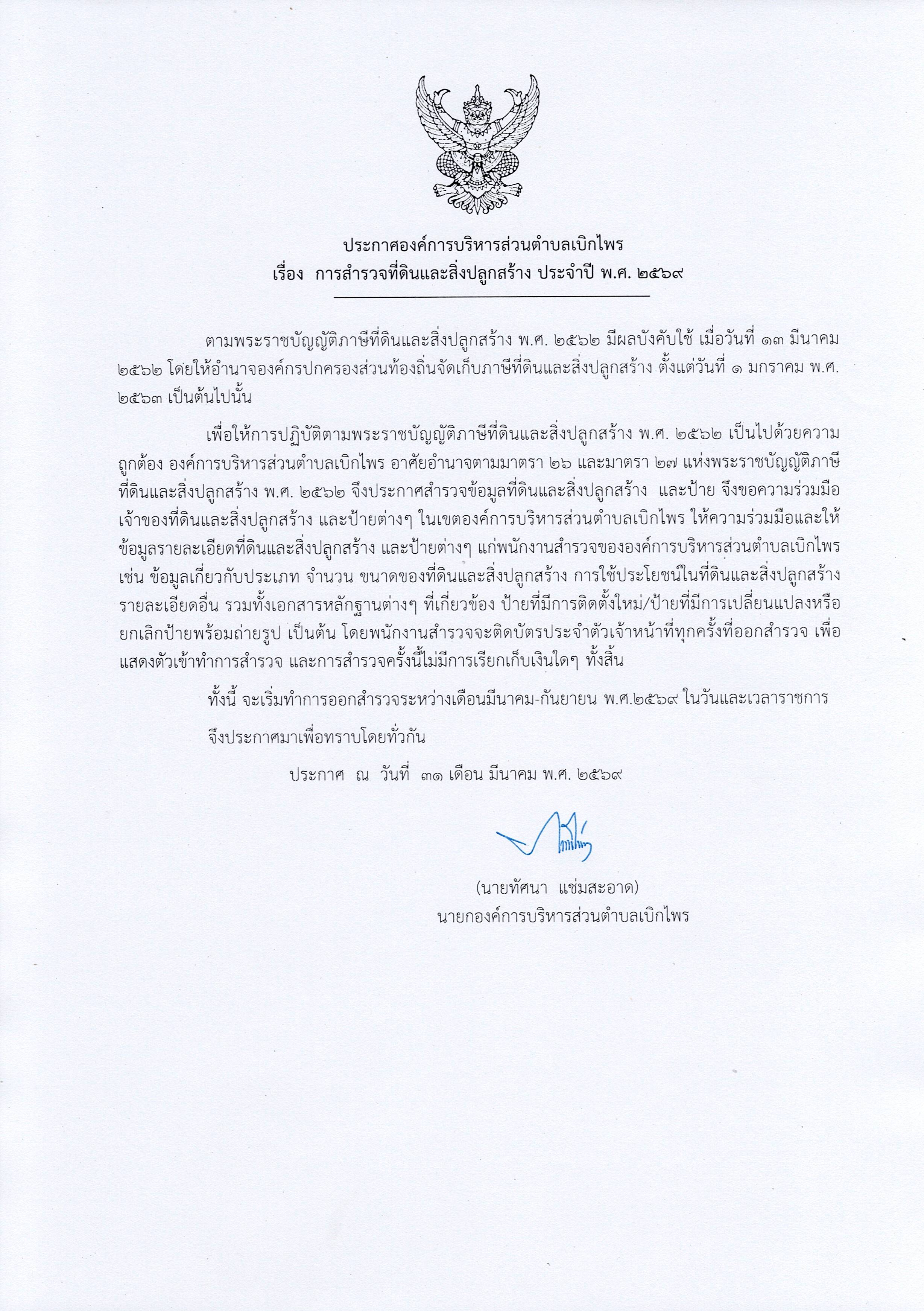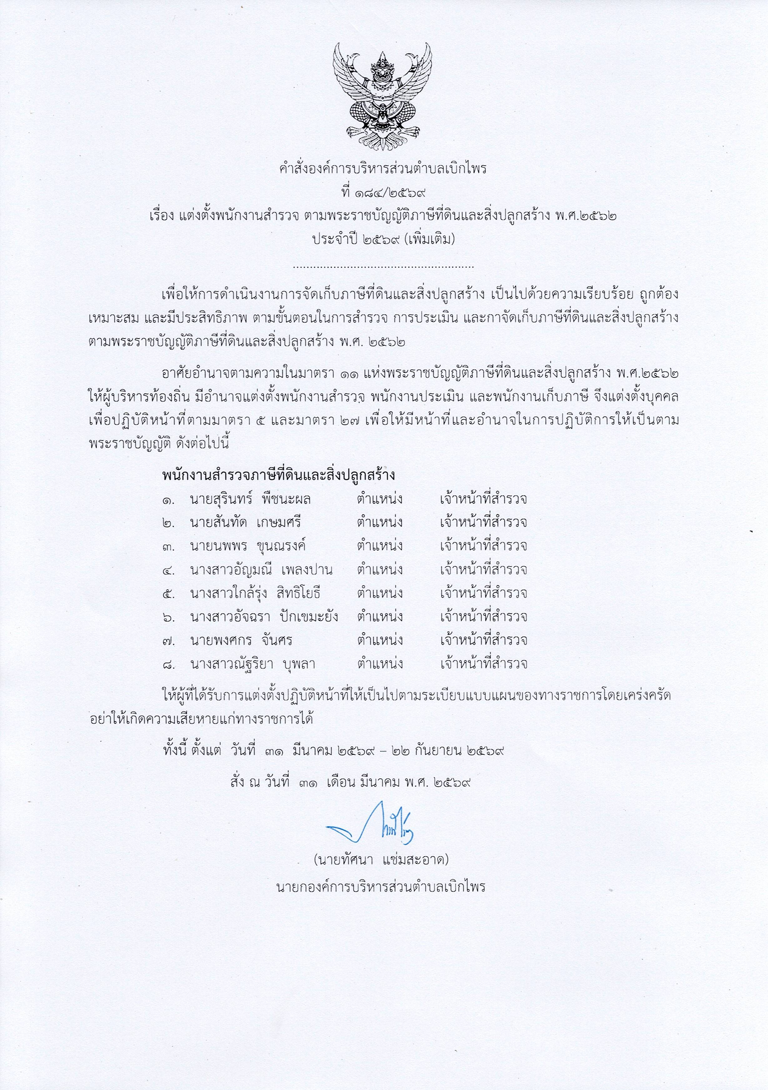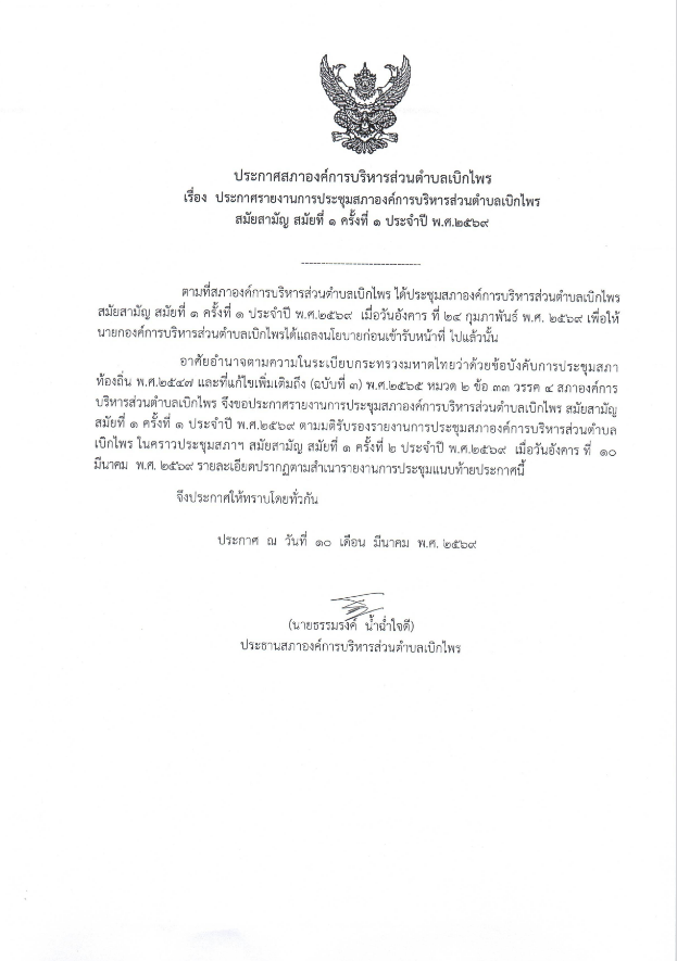องค์การบริหารส่วนตำบลเบิกไพร อำเภอจอมบึง จังหวัดราชบุรี โทร 032-739-626