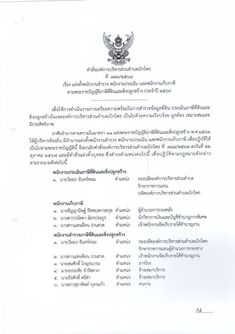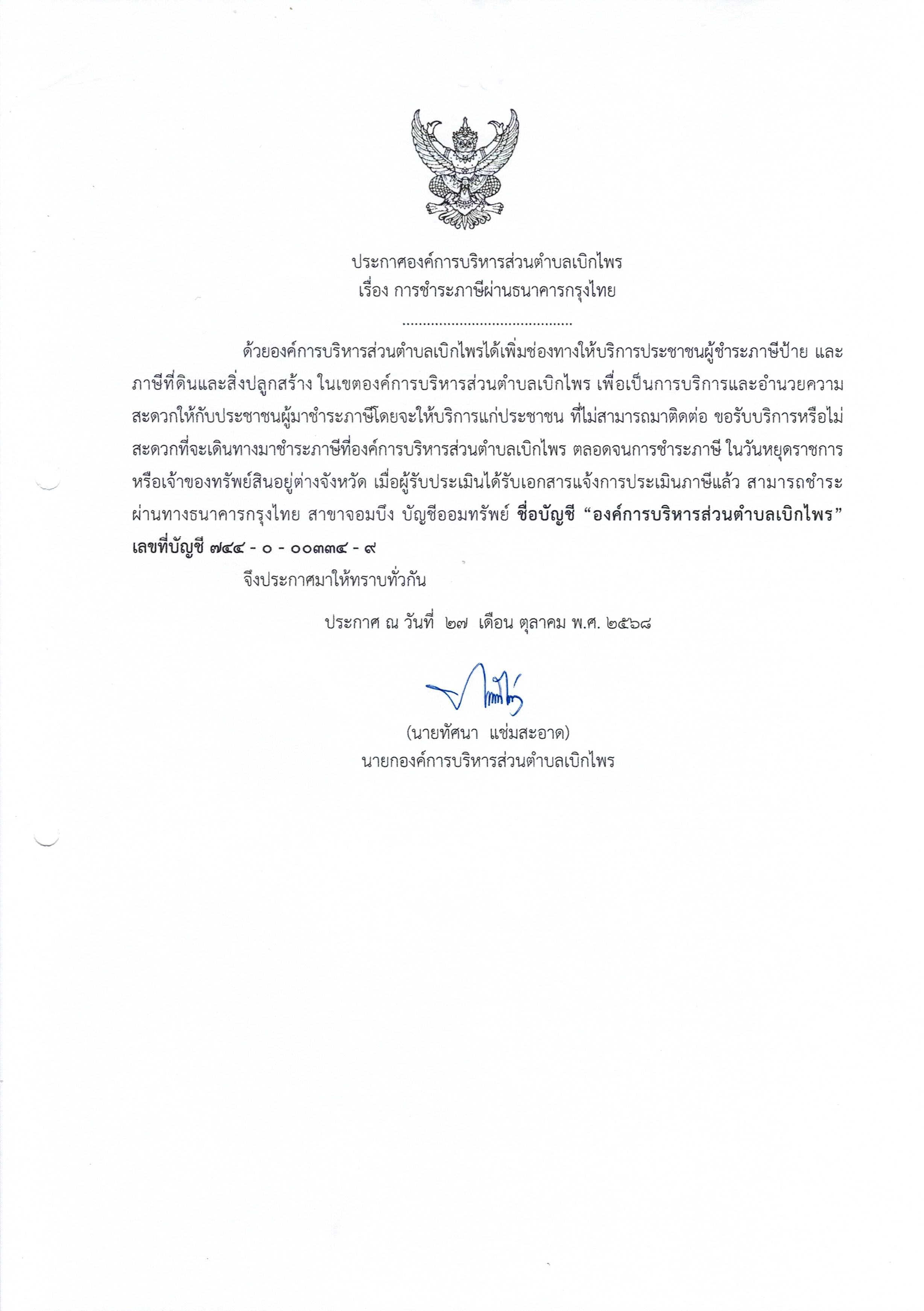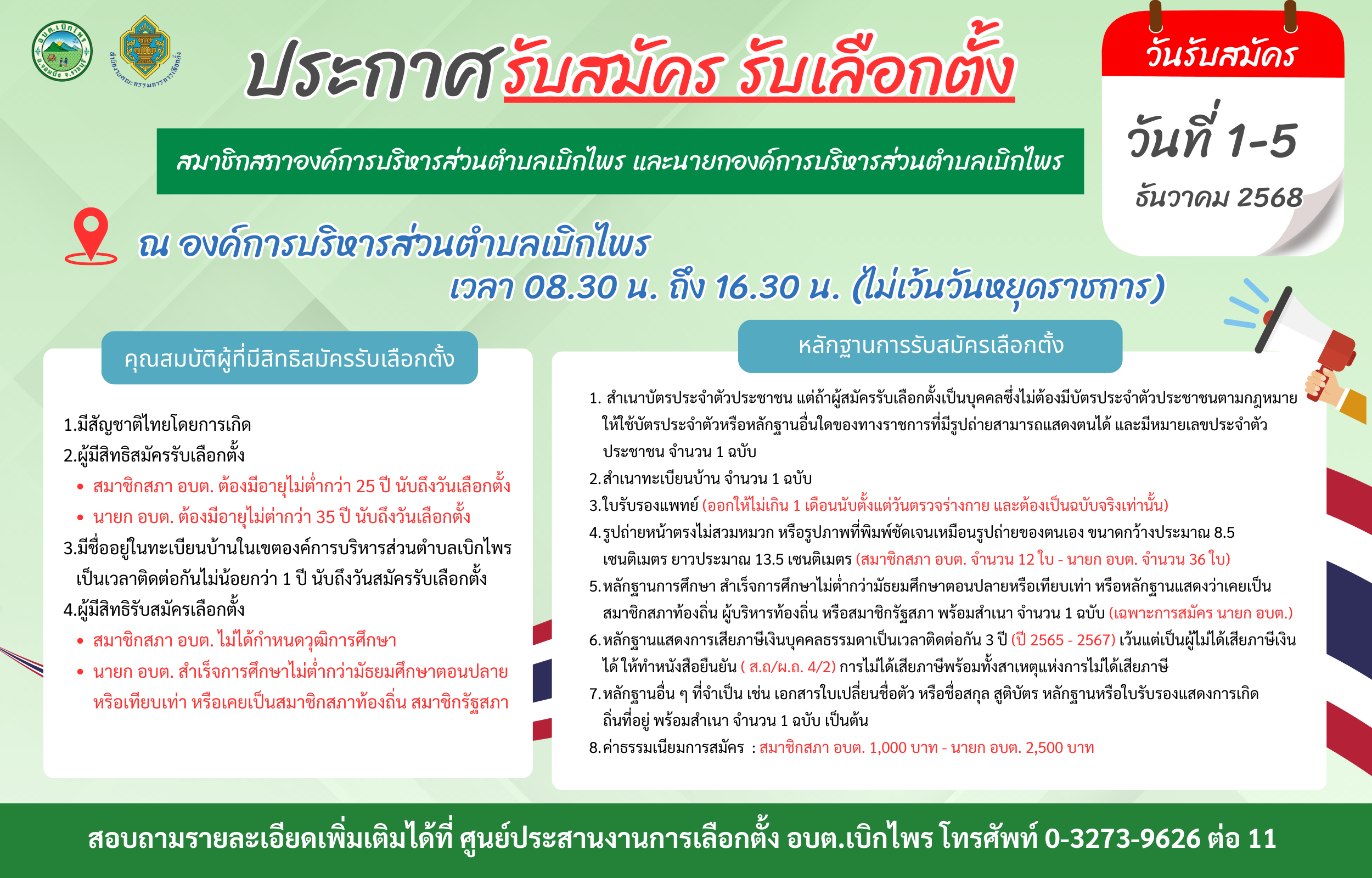 องค์การบริหารส่วนตำบลเบิกไพร อำเภอจอมบึง จังหวัดราชบุรี โทร 032-739-626