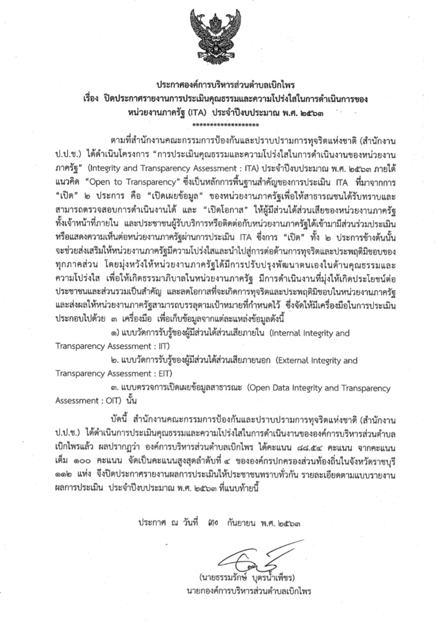 องค์การบริหารส่วนตำบลเบิกไพร อำเภอจอมบึง จังหวัดราชบุรี โทร 032-739-626